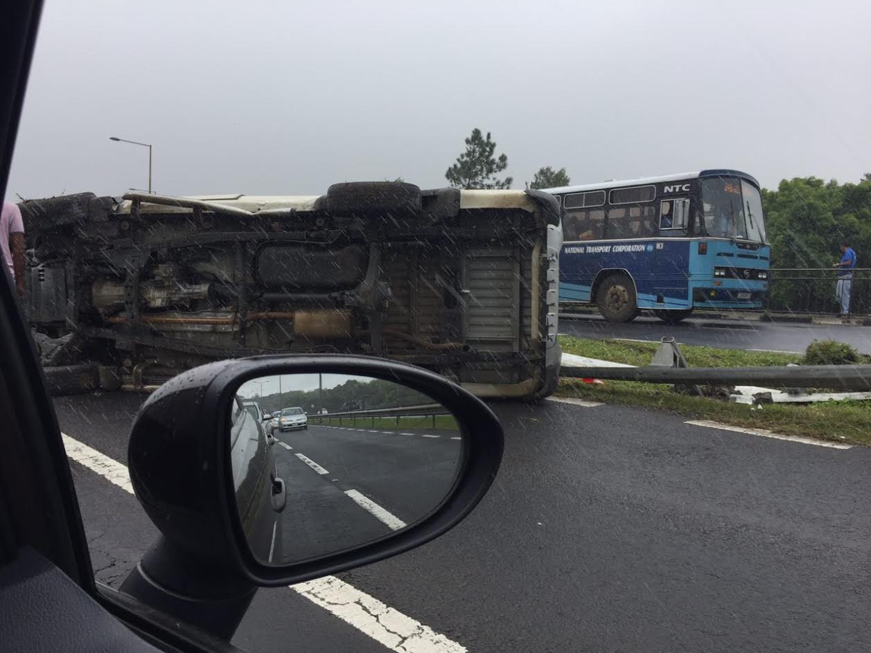 Sur l’autoroute à La Vigie aux alentours de 12 H 00, un 4 X 4 se sont retrouvé sens dessus dessous sur l’asphalte.