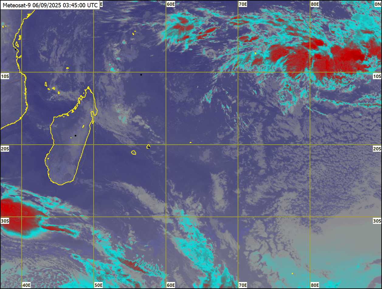 Prévisions pour les prochaines 24 heures : Mi-couvert devenant parfois nuageux principalement sur la moitié est de l'île et sur les terrains élevés tôt ce matin avec quelques averses. Essentiellement beau au cours de la journée. Toutefois, il y aura des developpements nuageux temporaires dans l'après-midi à l'ouest et sur une partie du plateau central avec quelques averses localisées. La température maximale sera supérieure à la moyenne et sera entre 22 et 25 degrés Celsius sur les hauteurs et entre 27 et 30 degrés Celsius dans les régions côtières. Il fera beau cette nuit. La température minimale sera entre 15 et 17 degrés Celsius sur le plateau central et entre 19 et 21 degrés Celsius sur le littoral. Le vent sera léger et variable ce matin, et soufflera du secteur est à environ 15 km/h au cours de la journée.