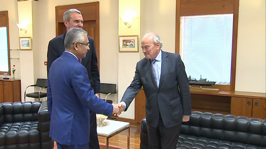 Port-Louis ce jeudi 22 Février 2018. Dominique Mangin d'Ouince, directeur stratégique de ce groupe était accompagné notamment de Diane Binder, directrice adjointe de cette société française et de l'ambassadeur Emmanuel Cauet.